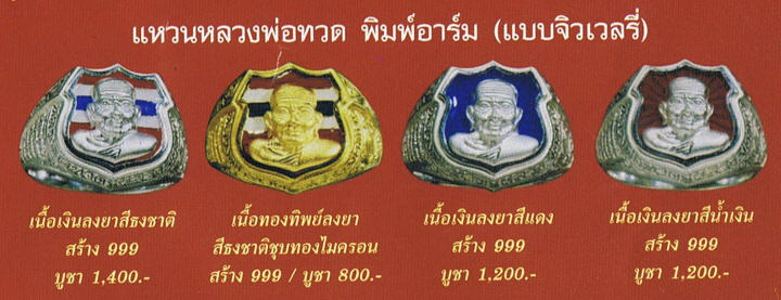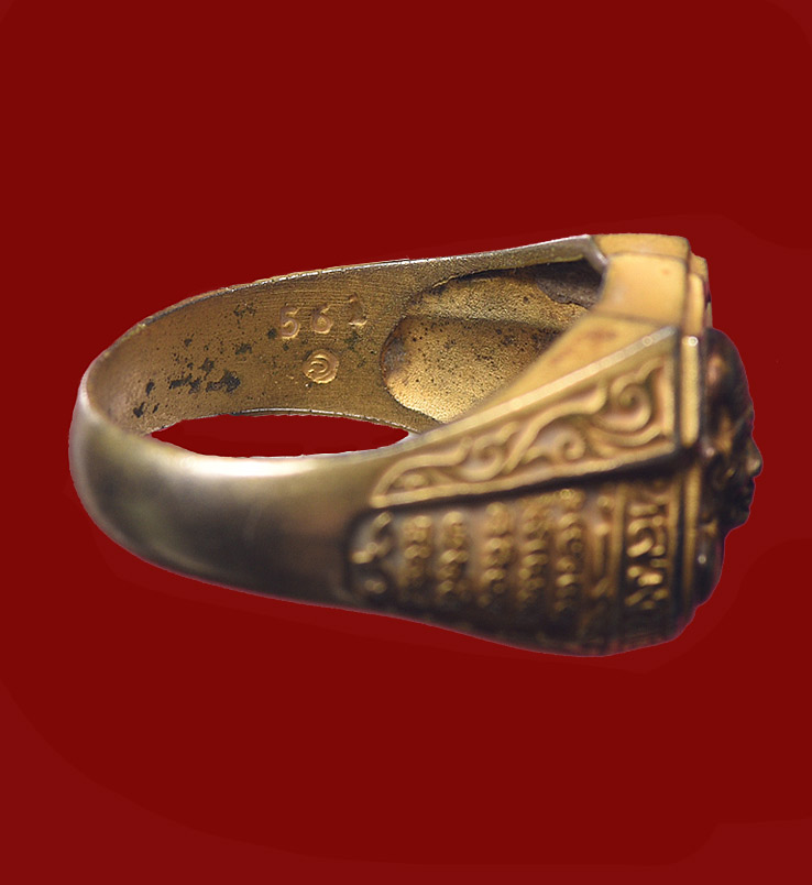 แหวน ลป.ทวด อ.ทอง รุ่น พิทักษ์แผ่นดิน พิมพ์อาร์ม เนื้อทองทิพย์ลงยาสีธงชาติ ปี 2551 (หมายเลข 561) เคาะเดียวแดง