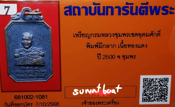 เหรียญกรมหลวงชุมพรเขตอุดมศักดิ์ จังหวัดชุมพร เนื้อทองแดงปี 2500 หลวงพ่อสงฆ์ ปลุกเสกครับ