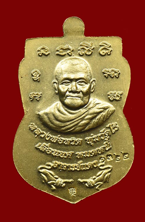 เหรียญเลื่อนยศ หมดหนี้ อาจารย์แดง วัดไร่ เนื้อกะไหล่ทองลงยา ปี 2549 (หมายเลข 1322) สวยเดิม เคาะเดียวแดง