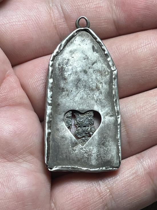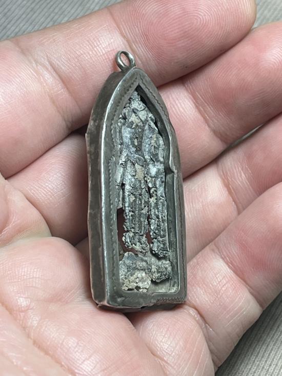พระร่วงยืน พิมพ์ซุ้มประตู เนื้อชินเงิน พร้อมเลี่ยมเงินเก่า