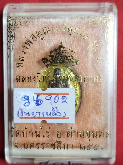 เหรียญหลวงพ่อคูณ ปริสุทโธ รุ่น ฉลองวิหารเทพ ออกวัดบ้านไร่ ปี 56 เนื้อ เงินลงยาสีเหลือง หมายเลข 902 สภาพสวย เคาะเดียวแดง