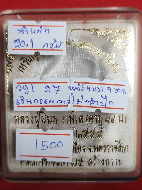 เหรียญหลวงปู่นิยม กมโล รุ่น เจริญพรเมตตามหานิยม ออกวัดแจ้งนอก ปี 2555 เนื้อ เงินพิมพ์กรรมการไม่ตัดปีกหลังแบบ พิเศษ ตอกโค๊ต 9 รอบ หมายเลข 27 สภาพสวย เคาะเดียวแดง