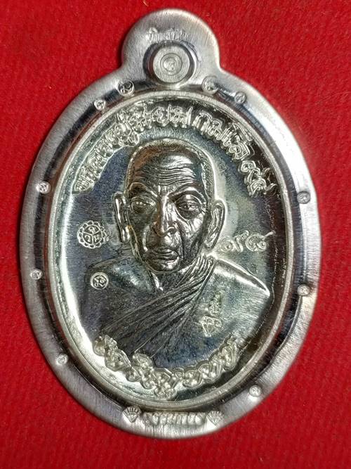 เหรียญหลวงปู่นิยม กมโล รุ่น เจริญพรเมตตามหานิยม ออกวัดแจ้งนอก ปี 2555 เนื้อ เงินพิมพ์กรรมการไม่ตัดปีกหลังแบบ พิเศษ ตอกโค๊ต 9 รอบ หมายเลข 98 สภาพสวย เคาะเดียวแดง