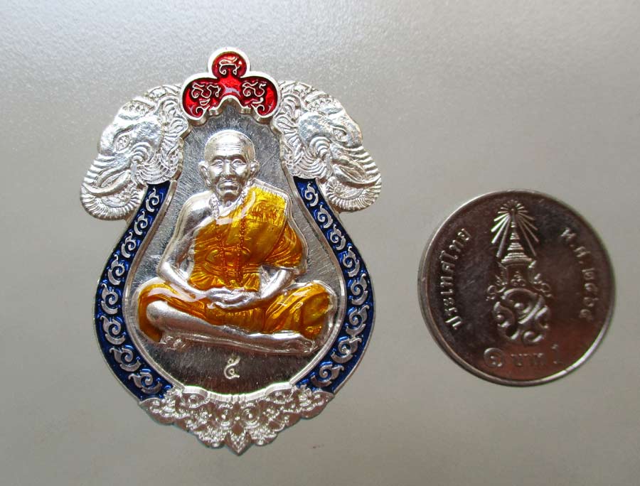 เนื้อเงินลงยา 3 สี ขนาด 2.8 ซ.ม. X 4 ซ.ม. สภาพเหรียญศิลป์สวยสมบูรณ์