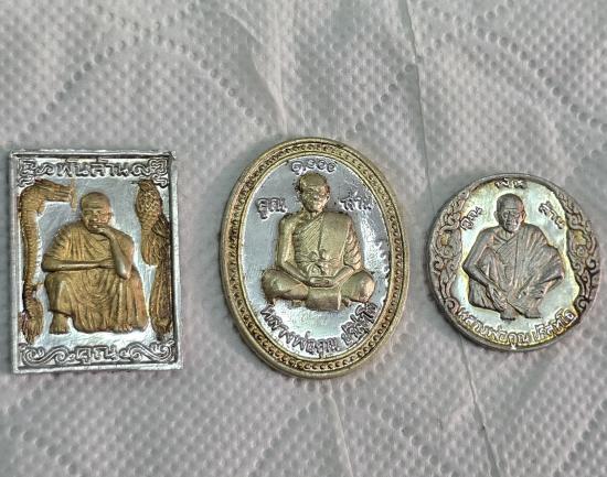 เหมา3 เหรียญเสาร์ห้าคูณพันล้านเนื้อเงินหน้าทองพ่นทราย เหรียญสี่เหลี่ยมหงส์มังกร หลวงพ่อคูณ เนื้อเงินหน้าทอง