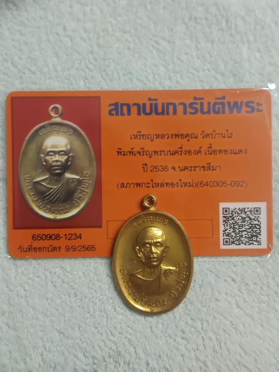 *** เริ่มหายาก !! เหรียญ ลพ.คูณ เจริญพรบน ปี 2536 + ผิวใหม่ พร้อมบัตร G ครับ ***