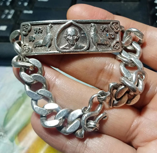4520...........เลสข้อมือ เนื้อเงิน หลวงพ่อรวย วัดตะโก ปี 2560 รวยพญาไก่ ทันหลวงพ่อ ครับ