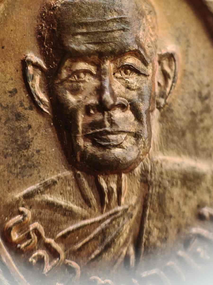 เหรียญเม็ดแตงหลวงปู่ทวด หลัง อาจารย์นอง วัดทรายขาว ปี 42 เนื้อทองแดงผิวไฟ บล็อค ว.จุด