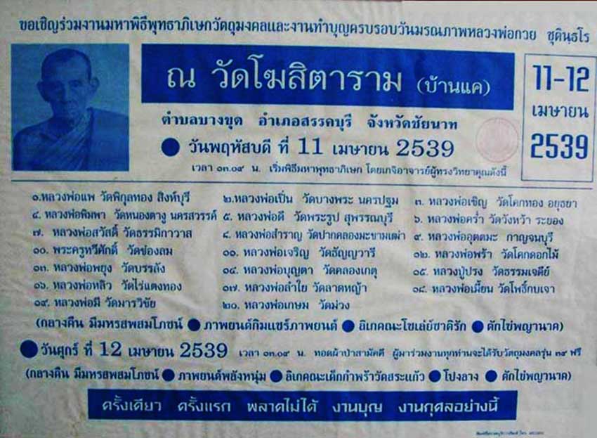 รูปใบปิดในงานพิธี มีเกจิคับคั่งร่วมปลุกเสก(ภาพหาจากอินเตอร์เน็ต)