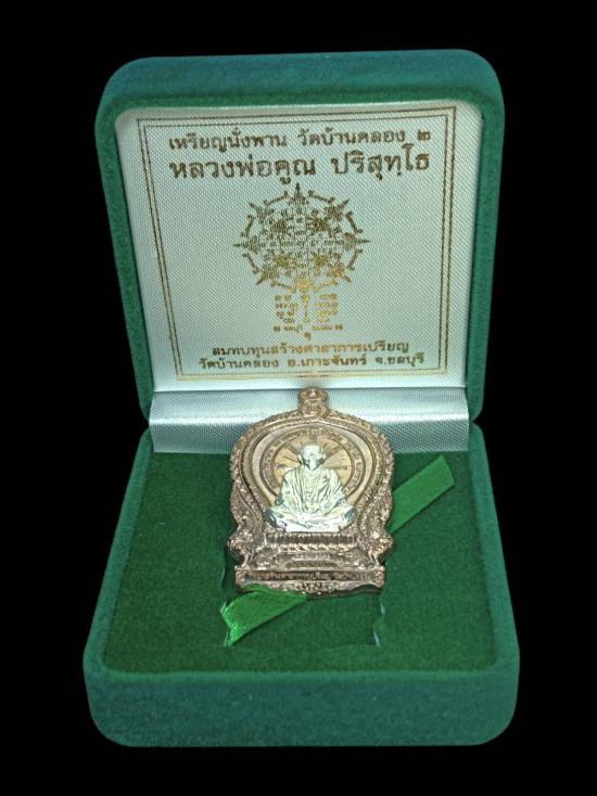 เหรียญนั่งพานหลวงพ่อคูณ เนื้อนวะโลหะหน้ากากเงิน วัดบ้านคลอง จ.ชลบุรี ปี 2557 หมายเลข 292 พร้อมกล่องกำมะหยี่เดิม สภาพสวยงามครับ