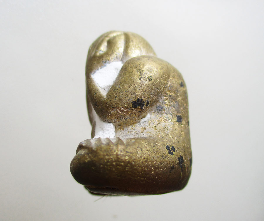 พระปิดตามหาโชคลาภ รุ่นแรก หลวงปู่รอด ฐิตวิริโย วัดสันติกาวาส จ.พิษณุโลก พ.ศ.2547 ฉลองอายุ 7 รอบ 84 ปี พ.ศ.2549 เนื้อทองระฆังเก่า ตอกโค๊ต ตอกเลข อุดผงฝังตะกรุดเส้นเกศา สภาพสวยสมบูรณ์ !!