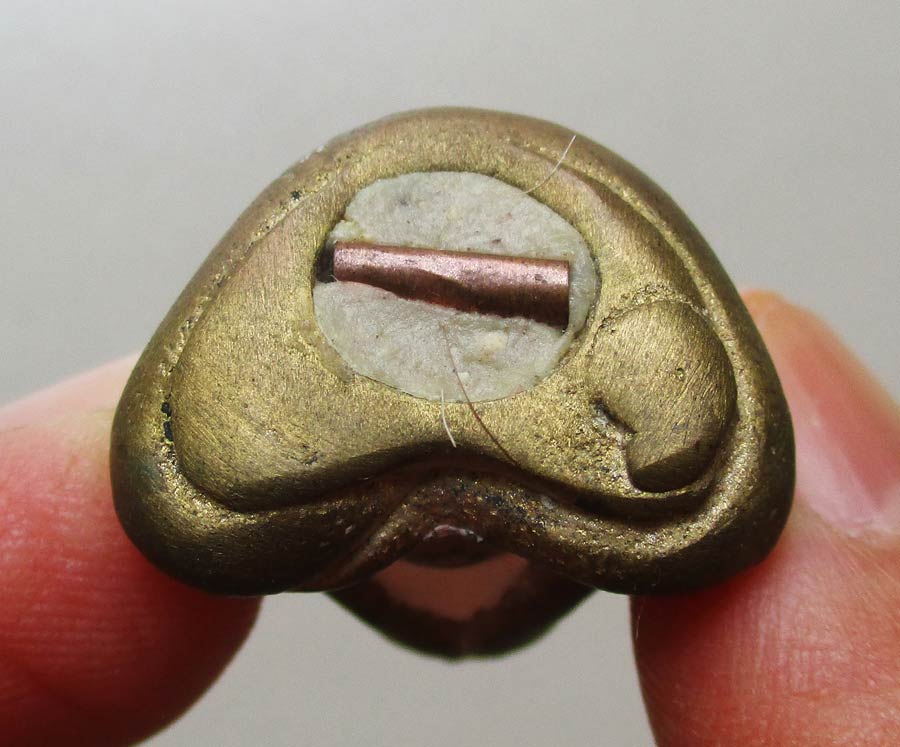 ใต้ฐานบรรจุมวลสารศักดิ์สิทธิ์ผงพุทธคุณนะ 108 ผง 7 อังคาร 7 เสาร์ ตะกรุดทองแดง 1 ดอก เส้นเกศา