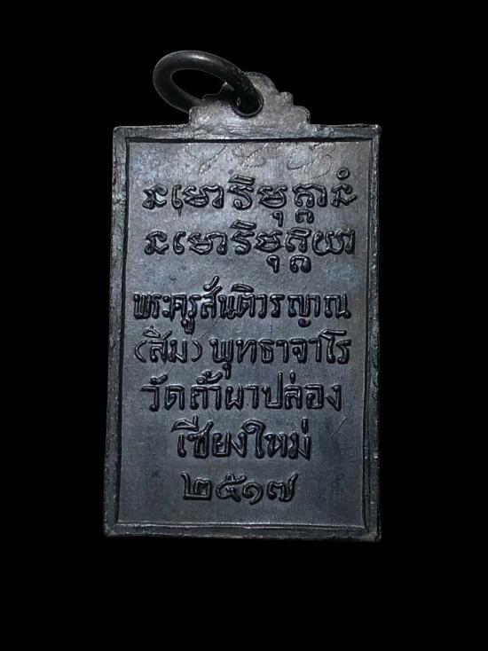 เหรียญสี่เหลี่ยมรุ่น 5 หลวงปู่สิมฯ วัดถ้ำผาปล่อง เนื้อทองแดงรมดำปี 2517
