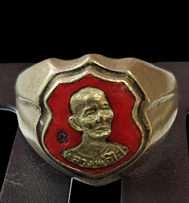 แหวนโล่ลงยาแดง หลวงพ่อไสว วัดปรีดาราม นครปฐม (เคาะเดียว)