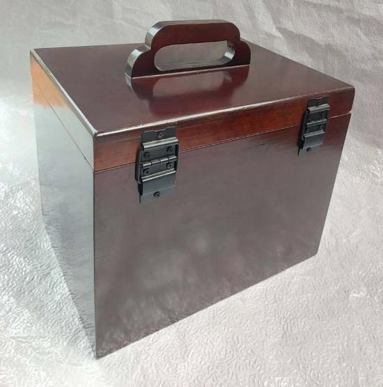 กล่องไม้โบราณสไตล์ญี่ปุ่น ทำจากไม้เคลือบเงา ตกแต่งด้วยผ้าทอกิโมโน 1 ลิ้นชัก ขนาด 9.5*7 สูงรวมหู 9.5 นิ้ว