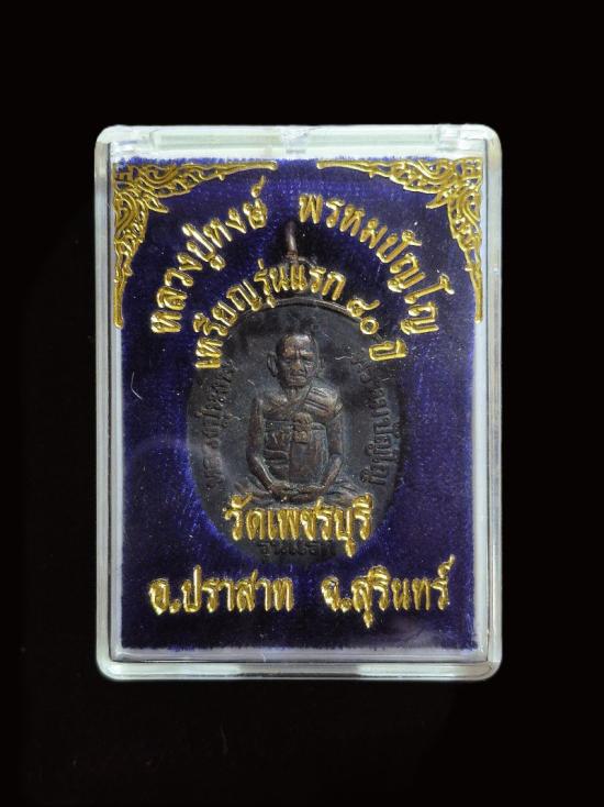 เหรียญรุ่นแรก ๘๐ ปี หลวงปู่หงษ์ พรหมปัญโญ สุสานทุ่งมน(วัดเพชรบุรี) จ.สุรินทร์ ปี ๒๕๔๑ เหรียญมีประสบการณ์ สุดยอดวัตถุมงคลเครื่องรางของขลังสายเขมร เมตตามหาเสน่ห์ เมตตามหานิยม หลวงปู่หงษ์ได้ฤกษ์พิธีมหาพุทธาอธิฐานจิตปลุกเสก ประจุ พระคาถาและประจุธาตุทั้ง 4 คือ ดิน น้ำ ลม ไฟ เข้าสู่วัตถุมงคล เพื่อความสมบูรณ์ตามประเพณี และความศักดิ์สิทธิ์ เข้มขลังถูกต้อง เพื่อประสงค์จะให้ผู้ที่เคารพศรัทธาในองค์หลวงปู่หงษ์ ที่จัดสร้างขึ้นในครั้งนี้มีไว้บูชาที่บ้านหรือติดตัว จะอยู่เย็นเป็นสุข คุ้มภัยกันภัย และมีความเจริญรุ่งเรือง ในหน้าที่การงาน ค้าขายร่ำรวย แคล้วคลาดปลอดภัย ดีนักแล ฯ (พระครูปราสาทพรหมคุณ)หรือหลวงปู่หงษ์ พรหมปัญโญ วัดเพชรบุรี (สุสานทุ่งมน) ต.ทุ่งมน อ.ปราสาท จ.สุรินทร์ ยอดพระเกจิอาจารย์ผู้เปี่ยมไปด้วยเมตตาบารมีแห่งแดนอีสาน หลวงปู่ท่านมีพระเวทวิทยาคมมีพลังจิตญานสูง วัตถุมงคลที่ท่านอธิษฐานจิตปลุกเสก ล้วนแล้วแต่ศักดิ์สิทธิ์เข้มขลัง ท่านมีบุญญาบารมีมากเป็นที่เคารพบูชา เป็นที่พึ่งของ ของเหล่าบรรดายานุศิษย์และประชาชนทั่วประเทศ และประเทศเพื่อนบ้านเลย เคยมีผู้สามารถสัมผัส และจับพลังจิตได้ลองสัมผัสพลังจิตวัตถุมงคลของหลวงปู่ หลายท่านบอกว่ามีพลังจิตสูงมาก ดังนั้นวัตถุมงคลของท่านจึงเป็นสุดยอดของดีที่ควรมีไว้บูชาเป็นอย่างยิ่ง นะโม ๓ จบ นะเมติ ๑๒ ดีนักแล