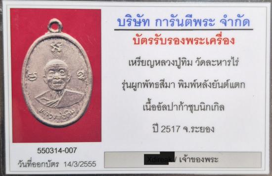 เหรียญรุ่นผูกพัทธสีมา หลวงปู่ทิม หลังยันต์แตก ปี17 พร้อมบัตรับรอง