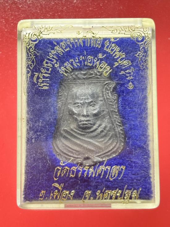 เหรียญหล่อหน้าเสือ (ย้อนยุค-รุ่นแรก) หลวงพ่อน้อย วัดธรรมศาลา ปี พ.ศ. 2534 เนื้อนวะ ตอกโค๊ต "น" กล่องเดิม