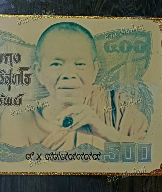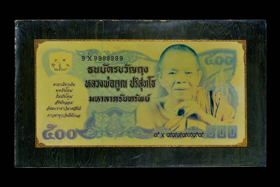 ขนาดบูชา ธนบัตรขวัญถุง มหาลาภรับทรัพย์ ชนิดห้าร้อยบาท ( วัดกรอบวิทยาศาสตร์ 10.5 x 18 นิ้ว ) พ.ศ.2537 ( งานพิมพ์ , แบงค์แดดส่องซีด )