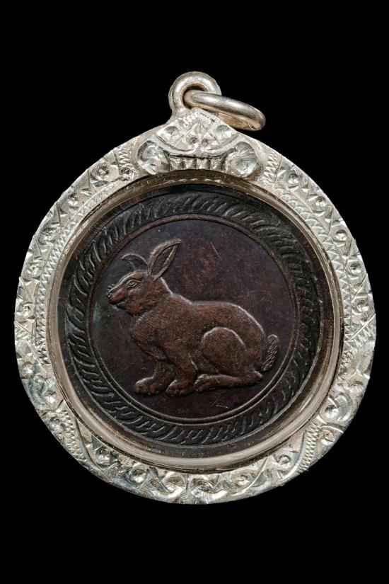 เหรียญนามปี รุ่นแรก ปีเถาะ เนื้อทองแดง พิธีศาลหลักเมือง ปี 2532 จ.นครศรีธรรมราชพร้อมกรอบเงิน