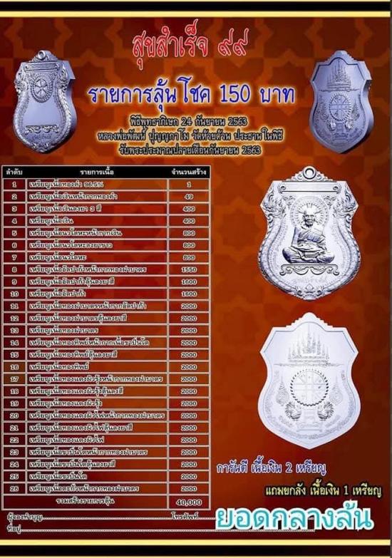 เหรียญหลวงพ่อพัฒน์ ปุญญกาโม วัดห้วยด้วน รุ่นสุขสำเร็จ๙๙ ปี2563 รายการลุ้นโชค ซีนเดิมๆ ชุด5ลุ้น