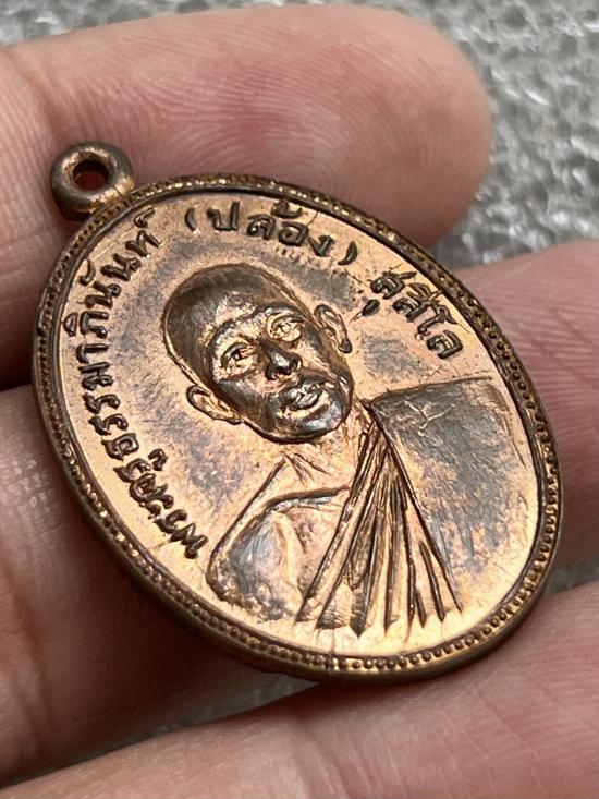 เหรียญรุ่นแรก หลวงพ่อปล้อง วัดหลุมดิน ราชบุรี สภาพสวยเดิม ผิวไฟหน้า-หลัง
