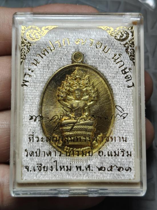 เหรียญพระนาคปรก 7 รอบ เนื้อทองฝาบาตร หลวงปู่บัวเกตุ ปทุมสิโร วัดป่าดาราภิรมย์ ปี2561 มาพร้อมกล่องเดิมๆ