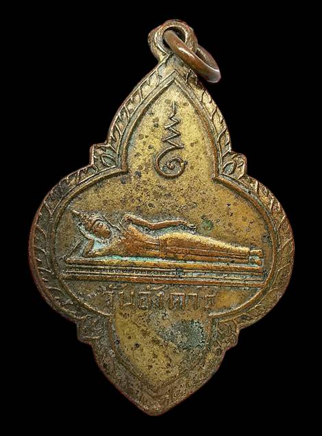 ...เหรียญพระปางไสยาสน์ หลวงพ่อจาด วัดบางกระเบา เนื้อทองแดงกะไหล่ทอง ปี2495 จ.ปราจีนบุรี พร้อมบัตรG-pra