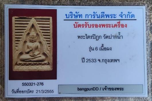 พระของขวัญ วัดปากน้ำ รุ่น6 (ไตรปิฏก) บล็อคนิยม มีประสบการณ์ พร้อมบัตรรับรองสถาบันการันตีพระ