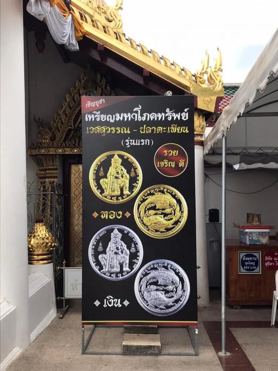 - เหรียญมหาโภคทรัพย์ ท้าวเวสสุวรรณ : ( รวย : เจริญ: ดี )