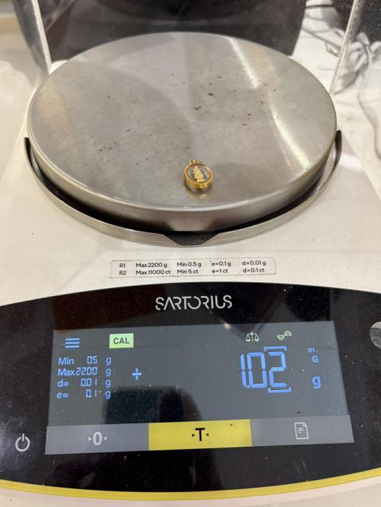 น้ำหนัก 1.02 กรัม กว้าง 1.3 ซม. สูง 2.2 ซม.(รวมห่วงแล้ว)