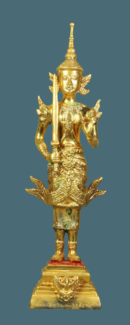 พระสยามเทวาธิราช จัดสร้างโดย สมาคมทหาร ตำรวจพลเรือน ภาคกลางแห่ง ประเทศไทย ปี 2525 พร้อมตู้ครอบ