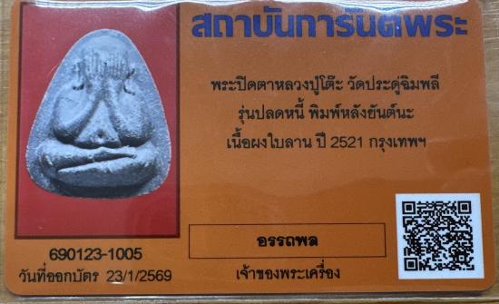 พระปิดตาปลดหนี้ หลังยันต์นะ บล็อกแรก หลวงปู่โต๊ะ วัดประดู่ฉิมพลี ธนบุรี เนื้อผงใบลาน (มีเส้นเกศา)