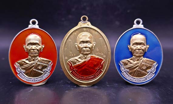 !!!!วัดใจ 9 บาท!!! 3องค์ เหรียญห่วงเชื่อม หลวงปู่บุญมา รุ่น มหาสีหนาท วัดเขาแก้วทอง จ.ปราจีนบุรี 2564 เนื้อ2กษัตริย์ ลงยาสีส้ม,เนื้อทองทิพย์ ไม่ตัดปีกลงยา,เนื้อ2กษัตริย์ ลงยาสีฟ้า พร้อมกล่องเดิม
