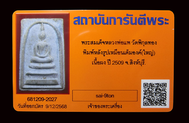 สมเด็จหลังรูปเหมือน ปี.09 หลวงพ่อแพ สวยๆบล๊อกหน้านี้หายาก ทองในพิมพ์สวยๆ ...................900