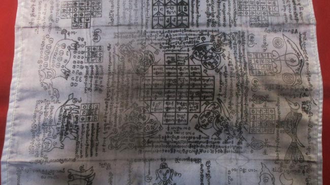 ผ้ายันต์ ไม่ทราบที่ ลวดลายสวย ครับ (พระบ้าน ครับ) |