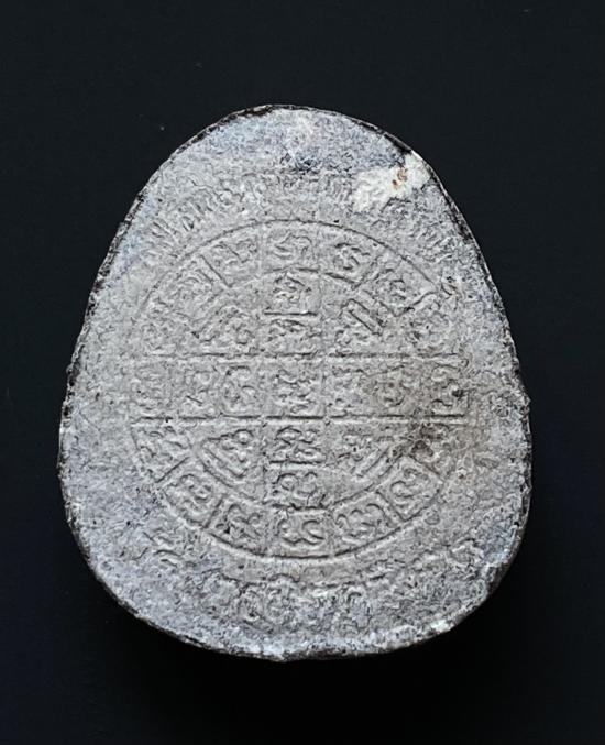 พระปิดตายันต์ดวงเล็ก ปี2523 สมเด็จพระญาณสังวร (เจริญ) วัดบวรนิเวศ_(เนื้อผงใบลานแช่น้ำมนต์บาง)_