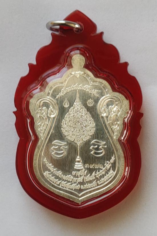 เหรียญเลื่อนสมณศักดิ์ หลวงพ่อพัฒน์ เนื้อเงินลงยาแดง เลี่ยมพลาสติก
