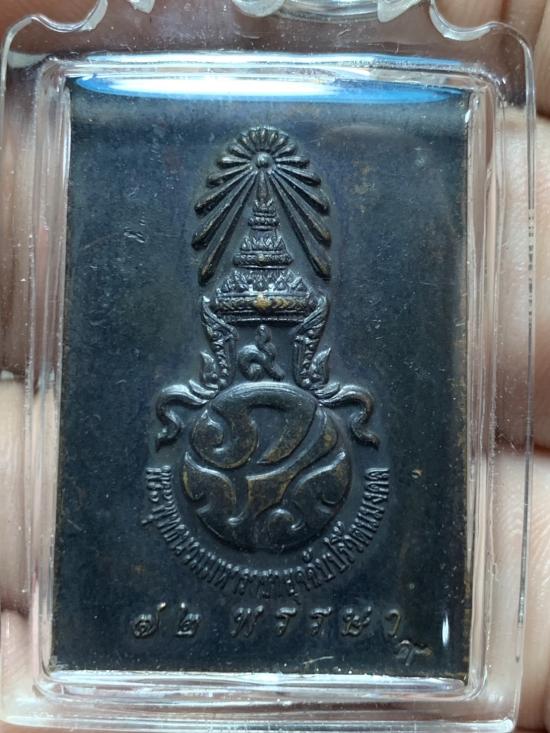 สมเด็จพระพุทธนวมมหาราชายุจฉับปริวัตนมงคล หลัง ภปร. 72 พรรษา เนื้อทองแดงรมดำ ตอกโค้ด เลี่ยมกันน้ำอย่างดี