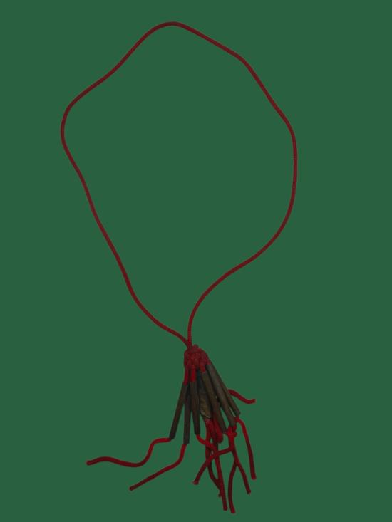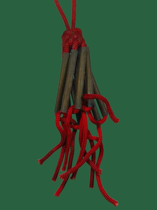 ตะกรุดกลุ่ม 9 ดอก เนื้อทองแดง ยาวประมาณ 3 ซม.สำหรับห้อยหน้ารถ ไม่รู้ที่วัดใจ 100 แดงครับ |