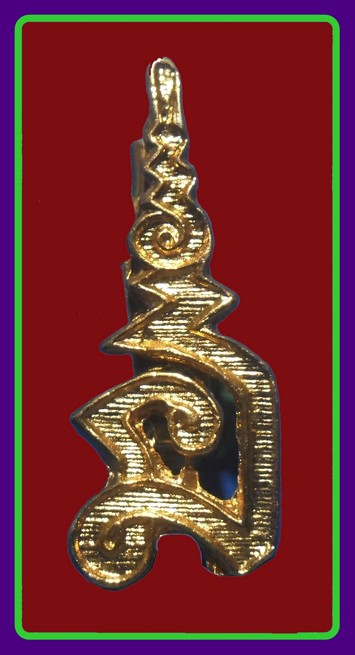 เข็มกลัดนี้ประทับยันต์นะฤาชา อันเป็นวิชาต้นตำรับที่หลวงปู่ศุขและหลวงพ่อเงิน วัดบางคลาน