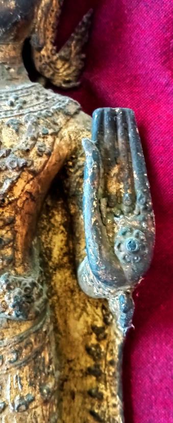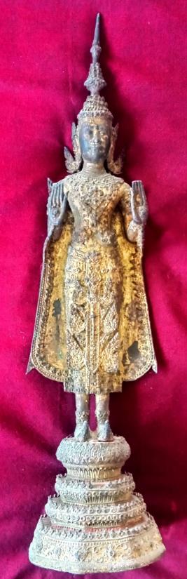 พระรัตนะ ปางโปรดพระยาชมพูบดี (นิยมสุด) เนื้อสำริด หรือทองเหลือง ลงรักปิดทองล่องชาดเดิม ๆ หล่อ 2 ขอบ (ยุคต้น) ใต้ฐานดินไทยวรรณะสองสี มีแกนหุ่นพระชัดเจน สูงประมาณ 19 นิ้ว (เลขมงคลที่นิยมสุด) เนื้อเก่า ทองเก่า ดูเข้มขลัง งามมากครับ สภาพตามรูป แท้ดูง่าย ส่งฟรีทั่วไทย รับประกันตามกฏครับ