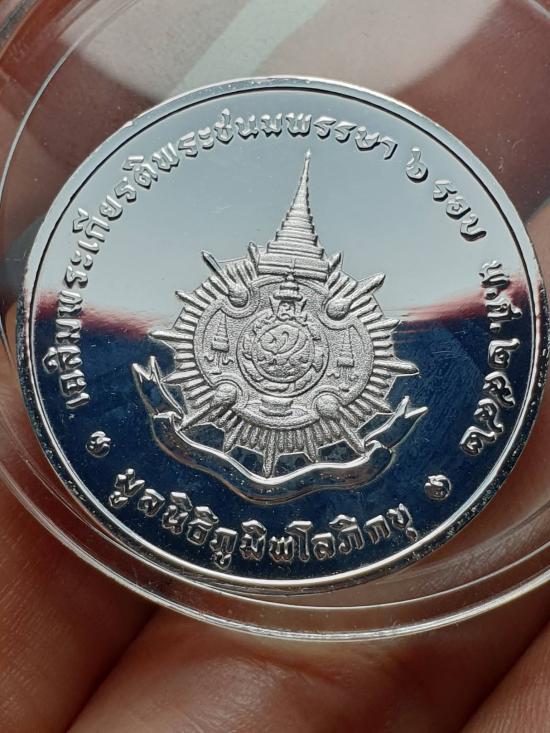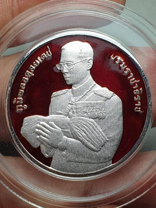 เหรียญถวายผ้าไตร เนื้อนิเกิลขัดเงาพ่นทรายลงยาแดง ขนาด3เซน มูลนิธิภูมิพโลภิกขุ ปี2542