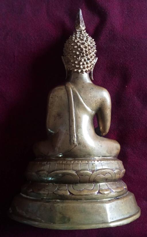 พระรัชกาล ปางตรัสรู้ หน้าตักเกือบ 4 นิ้ว เนื้อทองเหลืองออกแดงเป็นมันหนึกนวลมือนวลตา กระแสทองวิ่งทั้งองค์ ตามุกแท้ ใต้ฐานดินไทยเต็ม ๆ วรรณะสองสีเก่า เทปูนทับเก่าตรงกลาง หล่อหนา พระมีน้ำหนักมากหน่วงมือ พุทธลักษณะงดงามมากตามรูป แท้ดูง่าย ส่งฟรีทั่วไทย รับประกันตามกฎครับ