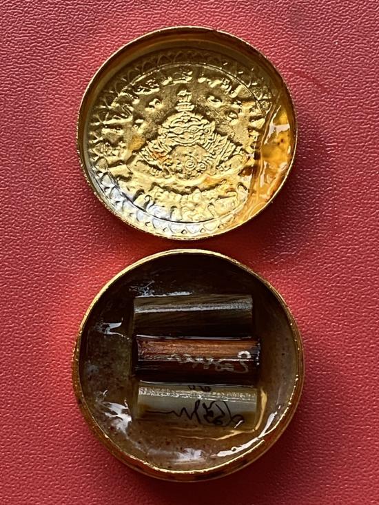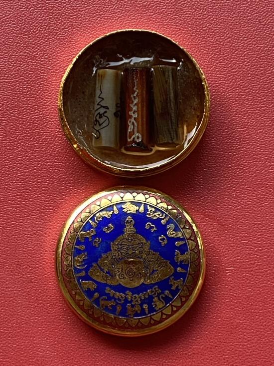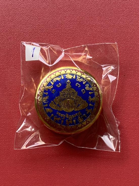 เคาะเดียวแดง สีผึ้งพระราหู รุ่น มงคลจักรวาล เนื้อ โลหะชุบทองลงยาสีน้ำเงิน ขอบสีแดง ขนาด3.2ซม |