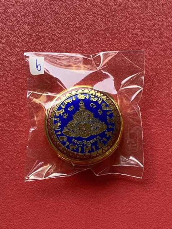 เนื้อ โลหะชุบทองลงยาสีน้ำเงิน ขอบสีแดง ขนาด3.2ซม |
