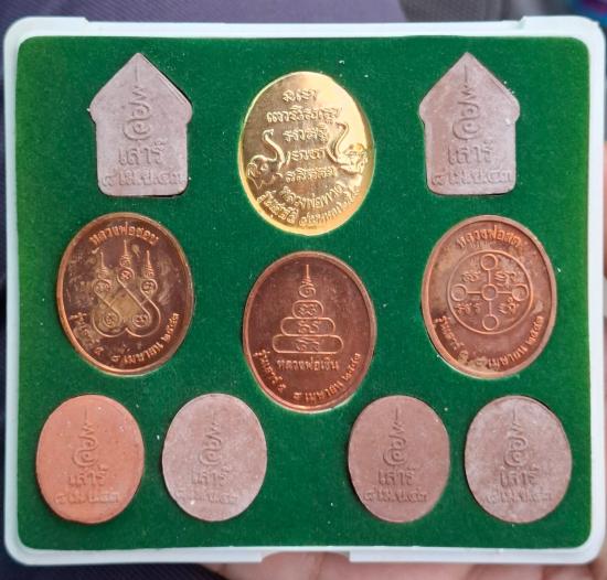 วัดใจ No.2 ชุดชอบเงินสด 10องค์ พิธีเสาร์๕ วัดสุทัศน ปี43 หลวงปู่หมุนปลุกเสก มีกล่องครับ |