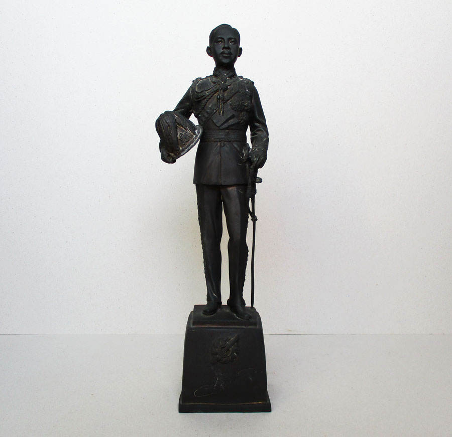 บรมรูปบูชา จอมพล สมเด็จพระเจ้าบรมวงศ์เธอ เจ้าฟ้าจักรพงษ์ภูวนารถ ( ต้นราชสกุล จักรพงษ์ ) ครบรอบ 81 ปี โรงเรียนเสนาธิการทห ารบก 3 เม.ย. 33 เนื้อโลหะรมดำมันปู ผิวหิ้ง สูงรวมฐาน 15.2 นิ้ว !!