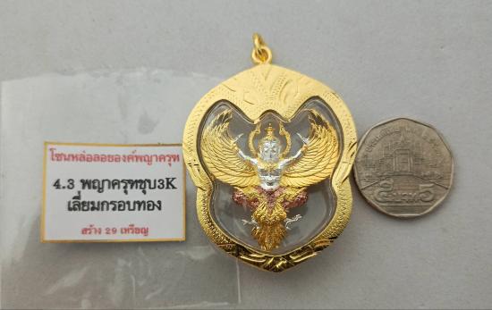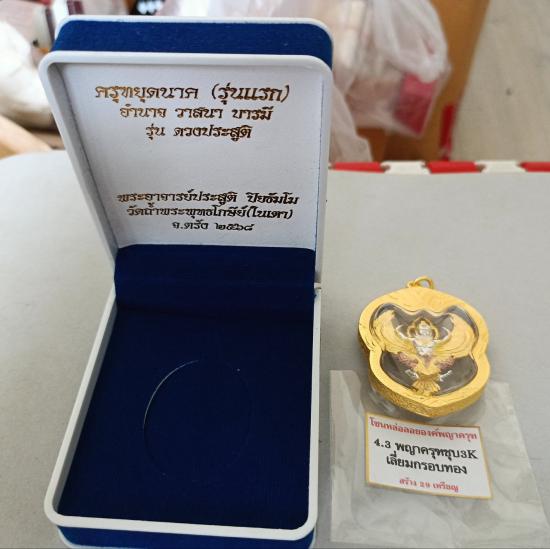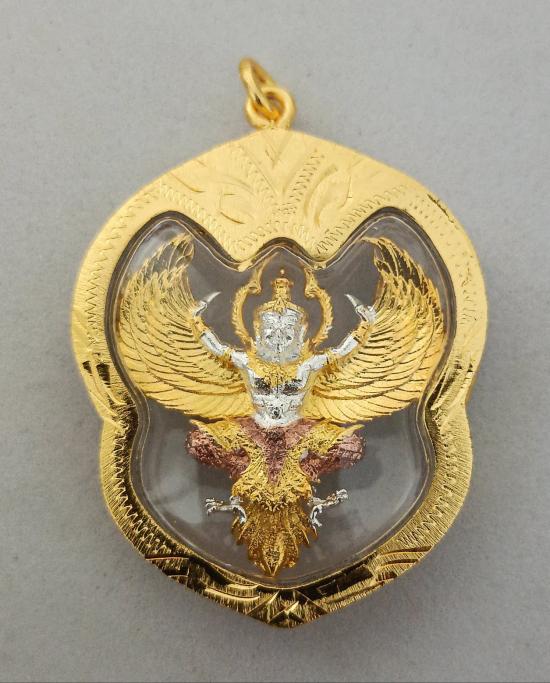 วัดใจเคาะเดียวแดงจ้า พญาครุฑ พระอาจารย์ประสูติ วัดในเตา เนื้อ3K เลี่ยมกรอบทองไมครอน เคาะเดียวแดงจ้า |