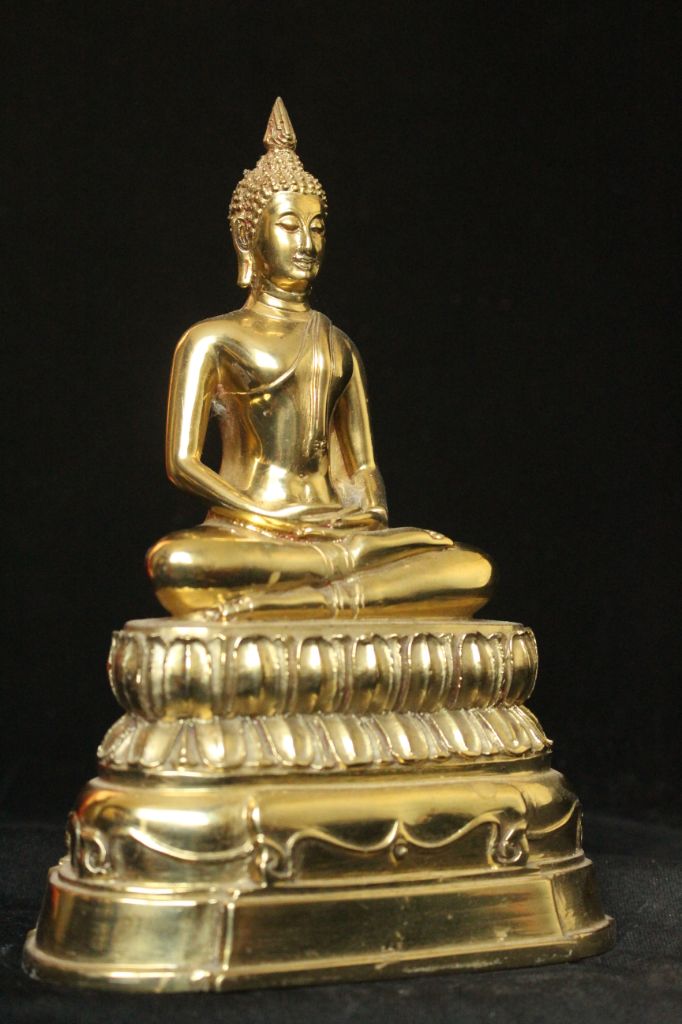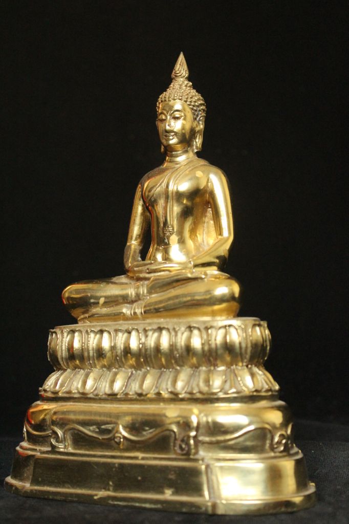 บางท่านอาจจะไม่ทราบว่าวัดหลวงพ่อโสธรเคยจัดสร้างพระปางประจำวันครบทั้ง 7 วันให้ประชาชนได้เช่าบูชาแต่ทางวัดได้เลิกการจัดสร้างให้บูชาไปจะ 30 ปีแล้วครับ ถ้าคนที่มีอายุเกิน 40 ปีแล้วได้ไปกราบไหว้หลวงพ่อโสธรบ่อยๆอาจจะเคยเห็นบ้างแต่สำหรับท่านที่ไม่เคยเห็นอยากเรียนว่า มีครับเป็นพระศักดิ์สิทธิ์ที่น่าเก็บน่าบูชายิ่ง ท่านใดที่เกิดวันพฤหัสบดีพระปางประจำวันคือพระปางสมาธิแบบองค์นี้ครับแล้วยังเป็นหนึ่งในพิมพ์หายากของวัดโสธรเพราะเนื่องจากคนจะไม่ค่อยได้เช่า ต่างจากพระปางอื่นๆที่ยังพอพบเจอได้มากกว่า เป็นพระที่มีเอกลักษณ์เฉพาะตัว เห็นแล้วจะรู้ว่าเป็นของวัดหลวงพ่อโสธรครับองค์นี้ผมรับประกันแท้ผิวเดิมสมบูรณ์ทุกจุดขนาดหน้าตัก 4 นิ้ว ผิวพรรณดูง่ายครับองค์พระสวย องค์พระจัดสร้างในปี 2541 หล่อด้วยเนื้อทองผสมด้านล่างอุดเหรียญเทปูนแล้วปั๊มดวงประจำวันเรียบร้อยท่านใดที่เกิดวันพฤหัสบดี(วันครู)ควรมีพระปางนี้ไว้บูชาเป็นอย่างยิ่งครับผม